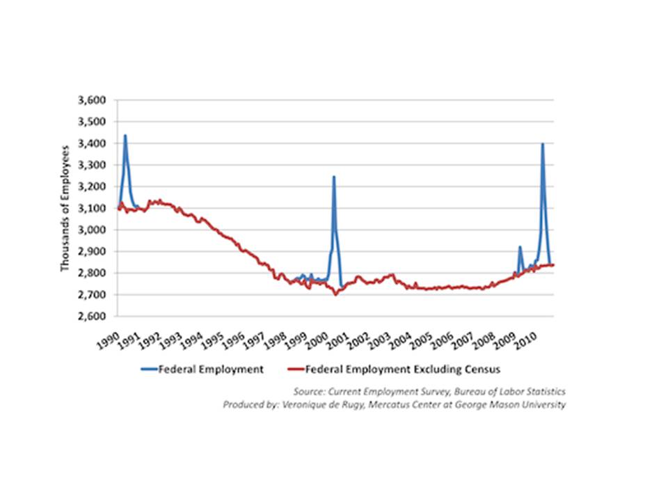 the federal bureaucracy, it's reach, regulations, dependants and employees has grown and will continue to...state and local losses account for the "reduction' you point to....