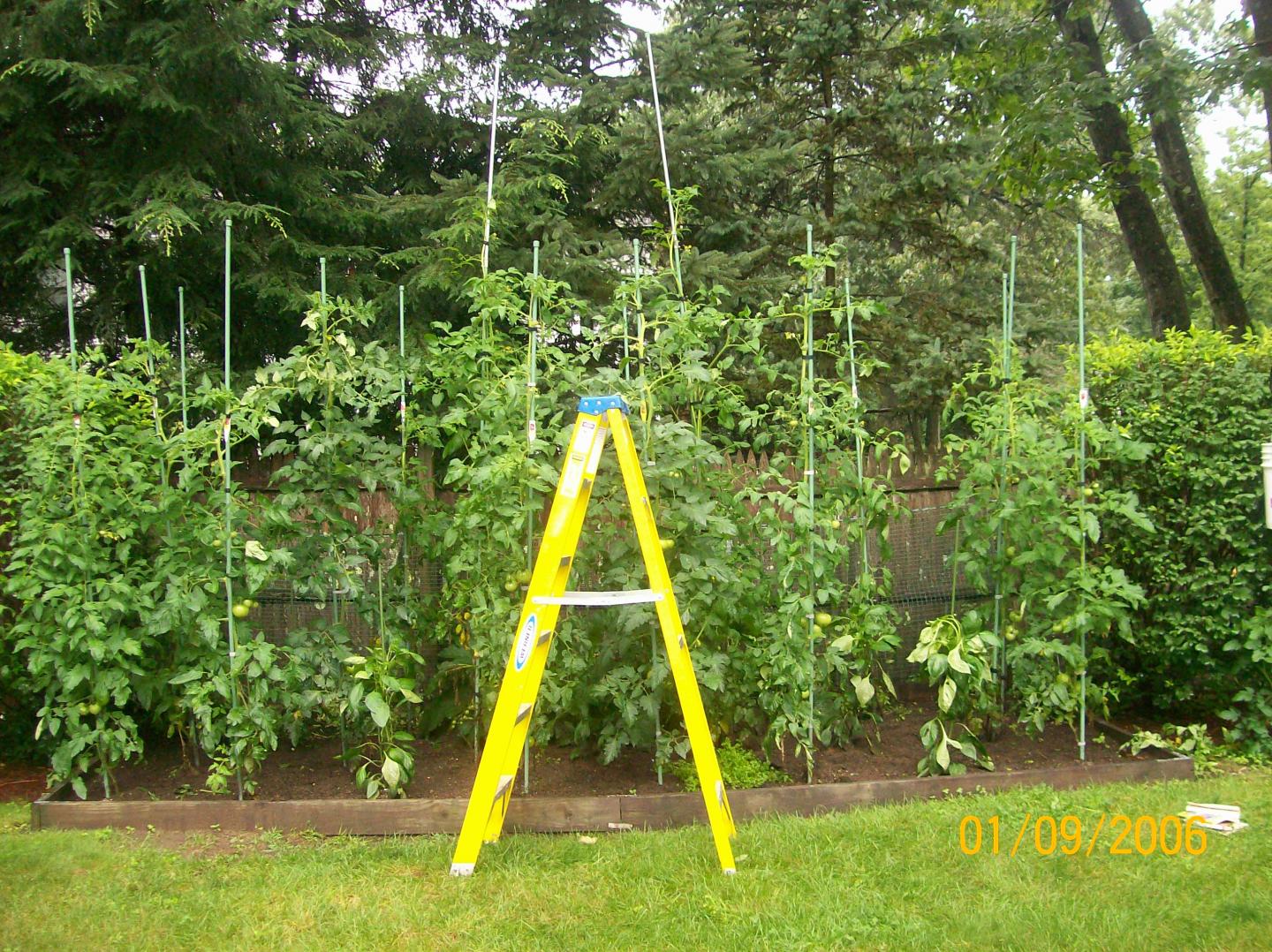 I just visited c. N. Snith farm right around the corner from my house. In one of the hot houses they about 200 tomato plants in five ga.llon buckets. They had a reel system attached to each plant. The higher the plant grows the more the spring loaded reel retracts. Too expensive for us to use. My garden is all planted as of today