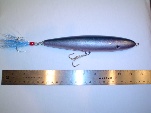 mega spook, 8" body and weighs in at almost 3-3/4 oz.