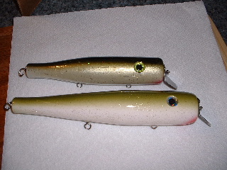big goo goo is 5.1oz and maple, the small one is a 2x4 that I thought was pine but it may be spruce, and a ayc gibbs troller with a dannie 2 lip