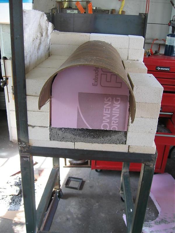 first pic is the furnace about half way completed and the 2nd pic is the mold for the inner wall of the recuperator.