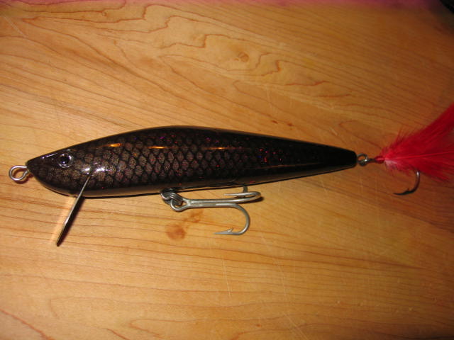 ....black , scales, ruby glitter habs inspired color scheme and tail...rip 9inch 3oz swims nice