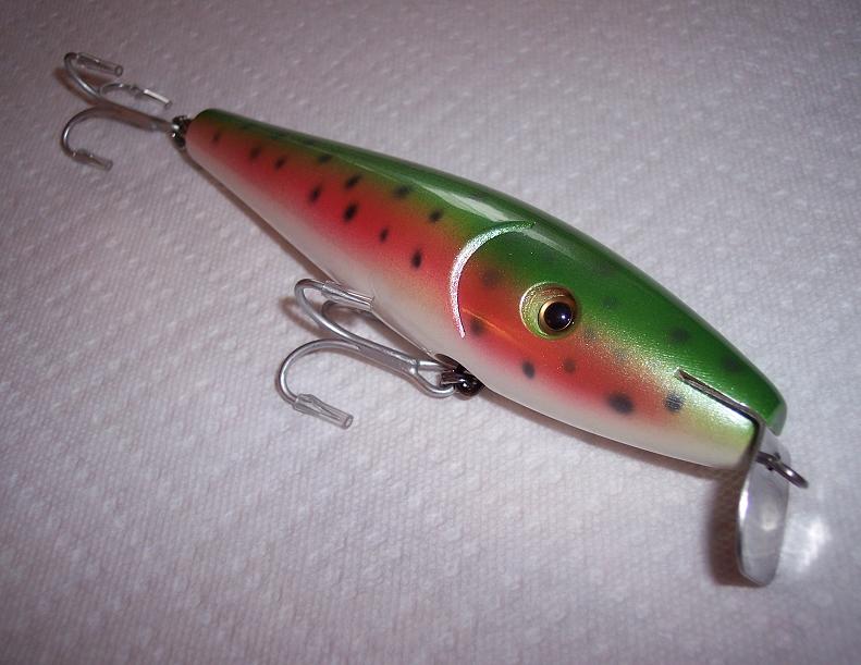I always admire a nice bow'......and this picture in OTW (compliments to Andy Nebreski) inspired me to take a crack at a Rainbow Trout pattern on my "Prey" swimmer! It took some thought but I am quite pleased with the results! Someday the Muskie will love these!!