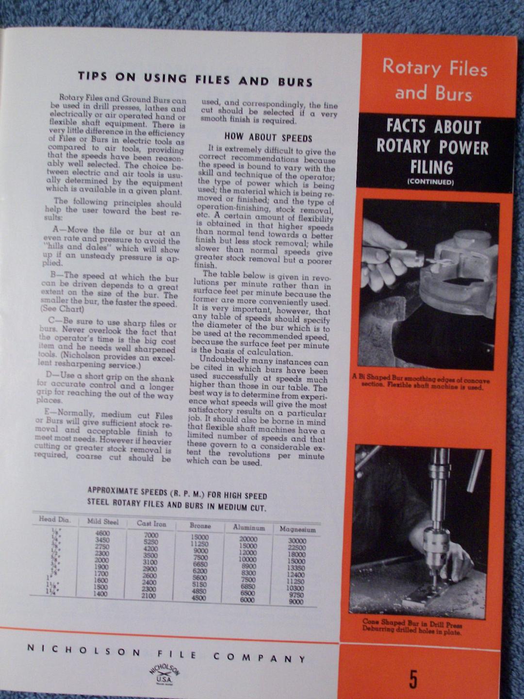 I was going through some of my stuff and I came across a 1957 Nicholson rotary file catalog (what plugbuilders refer to as ball rasps).
