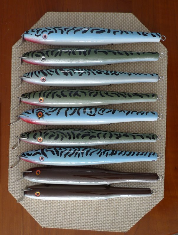 I clear coated a bunch of plugs this weekend and many of these will be used as trade bait @ Plugfest. Finally was getting decent clear coat results.. This is the 1st yr I have made the trolling plugs... can't wait to try them around some boulder fields at night
