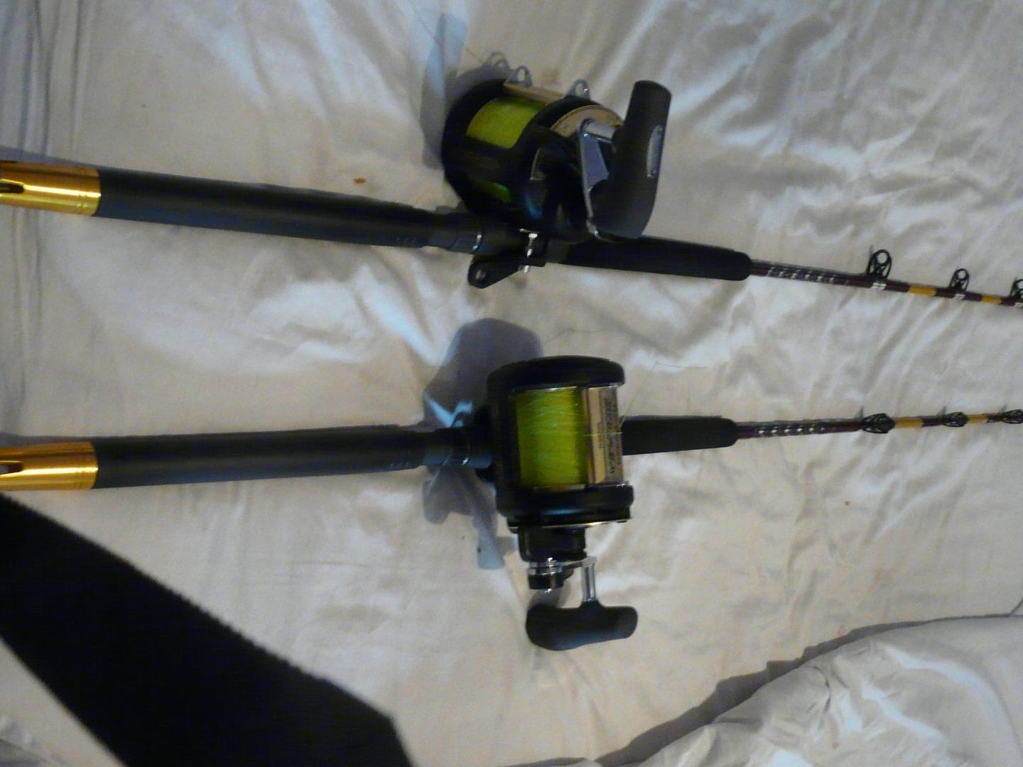 @ brand new NIB 2 speed 50 wide Shimano LRSAs filled with 80lb Momoi with matching custom made 50-100lb rods. $500 each or $900.00 for the pair. If you're new or already hooked on tuna you can't beat these combos. Saving at least $150 per set-up.
