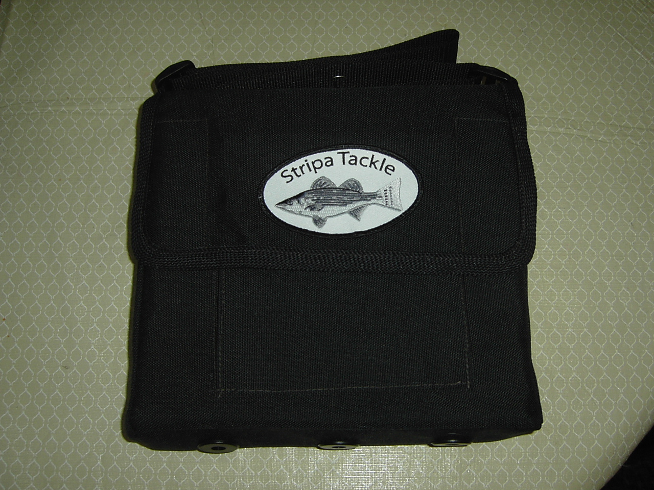 This is a brand new, no non-sense heavy duty bag. It was custom designed by a fisherman for fishermen (or woman) and was handcrafted in Massachusetts with quality materials. The bag measures 10" wide by 9" tall, heavy white plastic (good for visibility) with bottoms - 9" tubes so you can fit those long lures and each tube measures 2.5" by 2.5". The front has a large pocket and other gear can be kept between tubes and sides. The shoulder strap is 2" wide and it has two belt loops on backside. I have another one of these bags I fish myself and it travels and fishes well. Was asking $80 or BO - lowered to $60 Thanks!