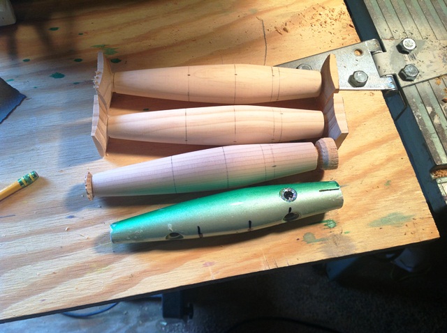 I will drill, seal, and rig one to see how it swims. Hopefully a winner! The black plug on the left is a 8" Danny i was also working on making.