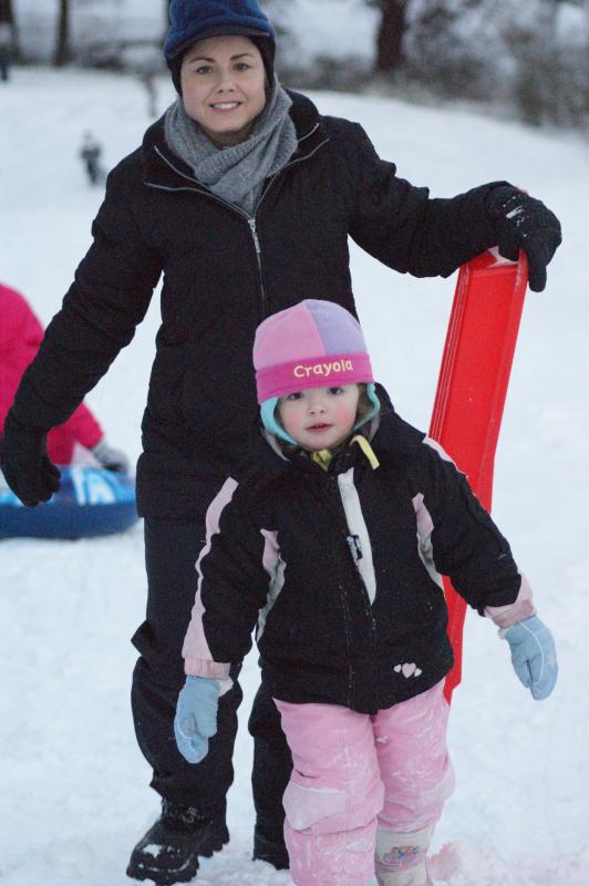 Definately my wife, I was fighting a cold at the time and she was sledding with the baby.