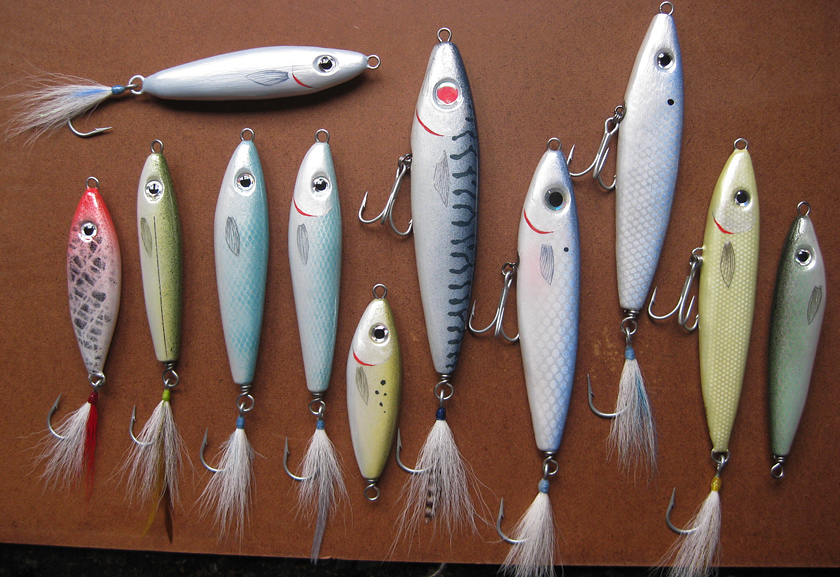 2 heavy, fast sink maple mackerel sliders built for friends for the canal.