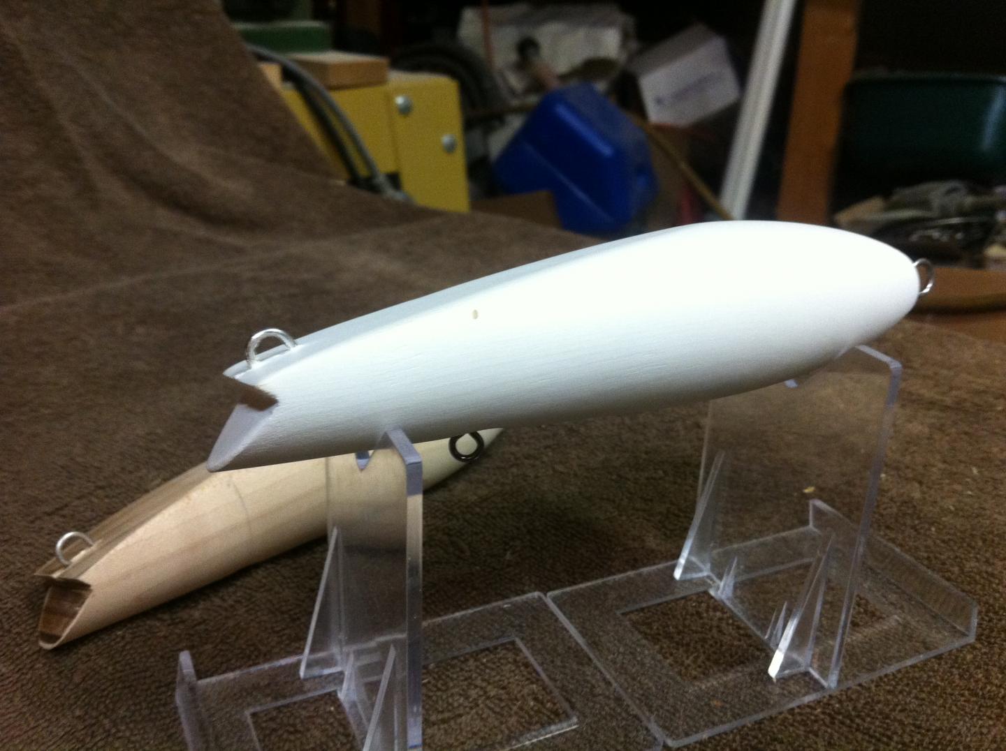 to take the adventure into darter hell and learn something new. The 9" darters were my first attempt and came out quite well after some weight adjustments. Turned a 6" out of AYC (first pic. in primer) and weighted it also and will give it a try later this week, but figured if your gonna do a darter do one in maple and unweighted. I'm happy how it came out and let's see how she works, it will hit the water this weekend.