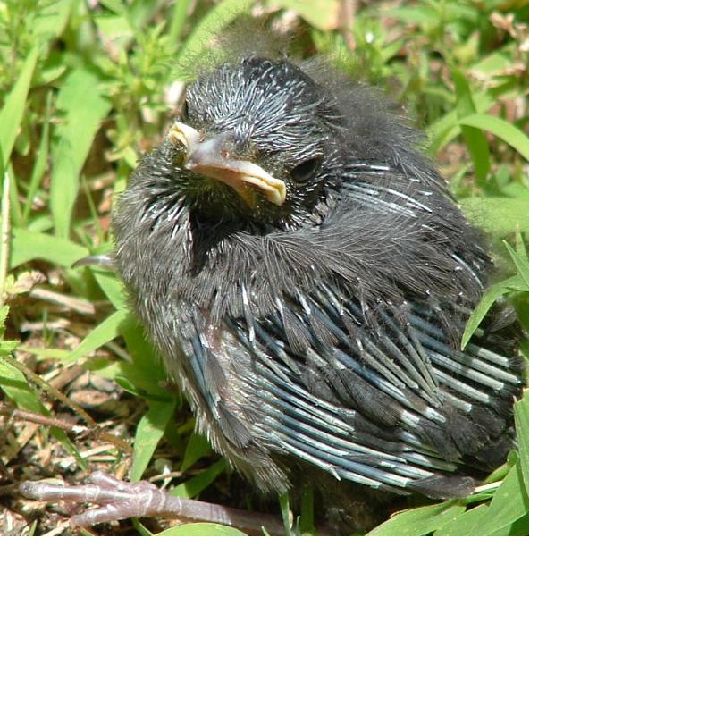 sadly it looks like he fell or was pushed out of the nest, to young to fly yet, looks like a blue jay chick...