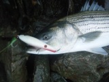 My biggest bluefish of the year from back in August. 17+ pounds on a JLH needlefish. I thought I had a monster bass on due to only having the single hook buried in its throat. Damn thing almost killed me on the fight.