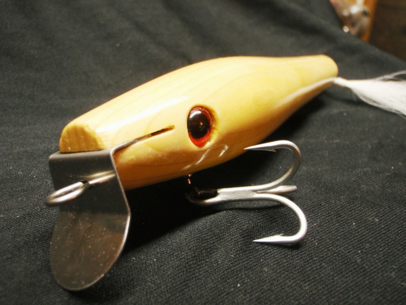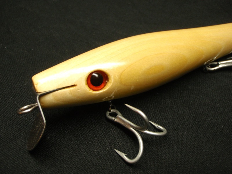 Here is one of my schoolie-ish clones I call The Muskrat (the ones rigged with the Lefty 2 that dive deep I call The Weasel). With a Lefty1 bent down and the lip bent down it will swim no deeper than 3-4" in calm water. It pushes a wake much like a tuna does when swimming just under the surface, and at super slow speed it swims 'in' the surface, as opposed to on top of it or below it as a danny does. I have high hopes for it.