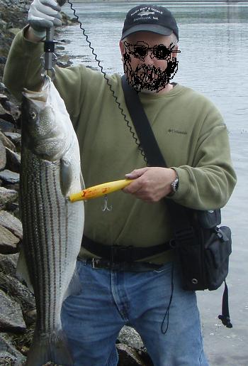 Eddie, Slingah got a fish on one of your swimmers, chum clone, on Friday. Larry must have gotten a picture. I wish I had black hair again.