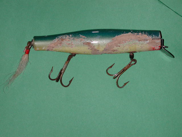 With this known, how do you control these factors ? Several ways can give you these 2 different actions. For a shallower, wider wallowing roll bend the eye and /or lip down. For a more wiggling action bend the eye and/or lip up. There are other ways to cause different actions from not only Danny's, but all surface swimmers. We think that the light stuff was only used to make these surface swimmers, but to my surprise was that they use to make them from a variety of wood such as Cedar, Pine, Poplar and even maple and birch. All with different actions and castability potential.