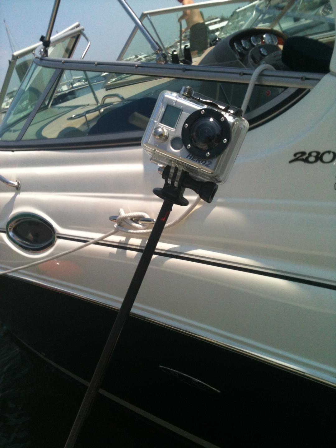 2. I bought a telescoping pole ($20 Quikpod QPAK-COMPOD Compod Slim Extendable Handheld Tripod off Amazon) which you attach the camera and use to plunge into the water. I am not necessarily recommending this one there are many from which to choose. If your boat has high gunnels you will definitely want one with a longer extension range than this one.