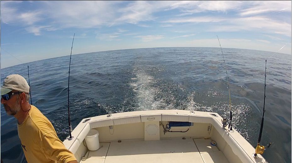 I finally got around to trying out my troll pro attachment. I rigged up a Sebile swimmer on a release clip so the lure trailed behind the housing about 5' and then trolled it over the hedge fence bar. Now please bear with me...it has a 32oz trolling weight and hit the bottom as I was letting it out. But once I let it out far enough it came off the bottom. The visibility kinda sucked in the sound and I didn't play with any hue or color editing so it is very green but if you view in full screen you can see the lure and a couple of bluefish hit the lure. I know it is lame but this is the first go.