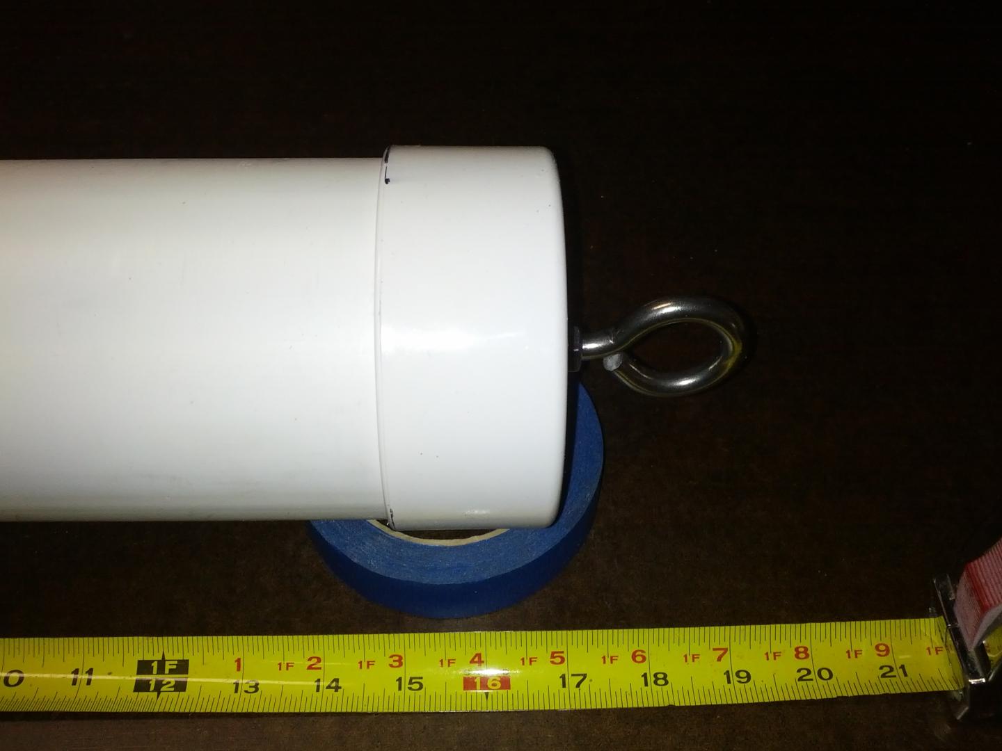 Making my dredge! I decided to go with thinner walled NDS plastic (drain) pipe vs. standard PVC. Any thoughts why I should NOT use this? I reinforced the cap with a piece of starboard so the eye bolt doesn't rip out the cap. Initial length overall about 16". Toughest part is going to be securely mounting the GoPro. Shown is the standard housing but I do have the Underwater Housing on order. So far excluding the $50 for the housing, got $25 for all the parts. BTW: I have 8' of 4" NDS pipe leftover if anyone interested in building one of these.