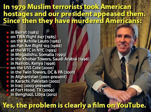 Not to mention the administration spent 70K to publish tv ads in Pakistan apologizing for the video. The State Department now confesses that there never was a protest outside the embassy before the attack. Ambassador to the UN, Susan Rice, went on umpteen different talk shows suggesting, in fact, that the movie did provoke the attack. Wonder how the guy that made the movie feels now...OHHHHH BOY!