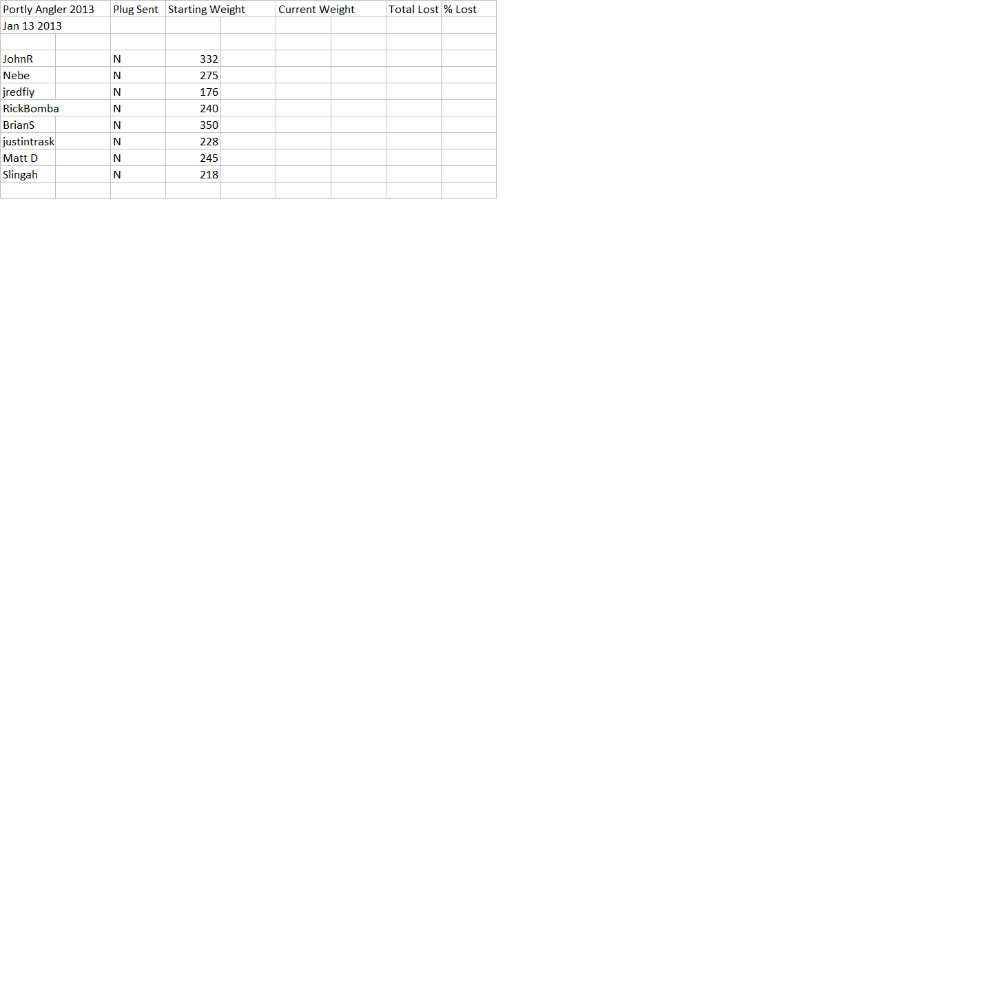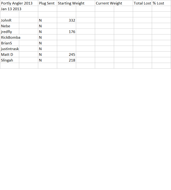 Looking for weigh-ins from 1-13-2013