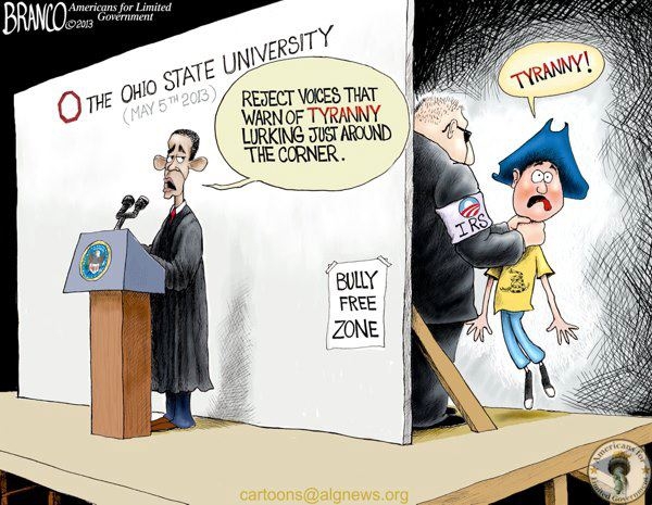 Spence, Obama has a demonstrable history of being less than tolerant to those on my side (Republicans should sit in the back of the bus, we cling to guns and religion because we are bitter and racist, liberals should punish their enemies, Romney is suffering from 'Romnesia' - haw-haw!!). Can you deny that with a straight face? This IRS thing, while there is no direct evidence to Obama, is awfully consistent with the cutlure Obama has brought with his administration...it's an obvious, demonstrable culture of intolerance towards conservatives.