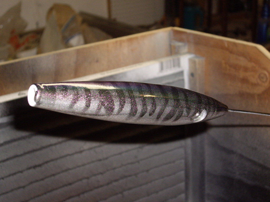 Well, spent some time painting and sealing this weekend while not working on the bathroom. Here are some pics of the Eddie needles, 7" Danny, Small 4 3/4" swimmers, and Small Musso swimmers. I have another 5 with paint drying
