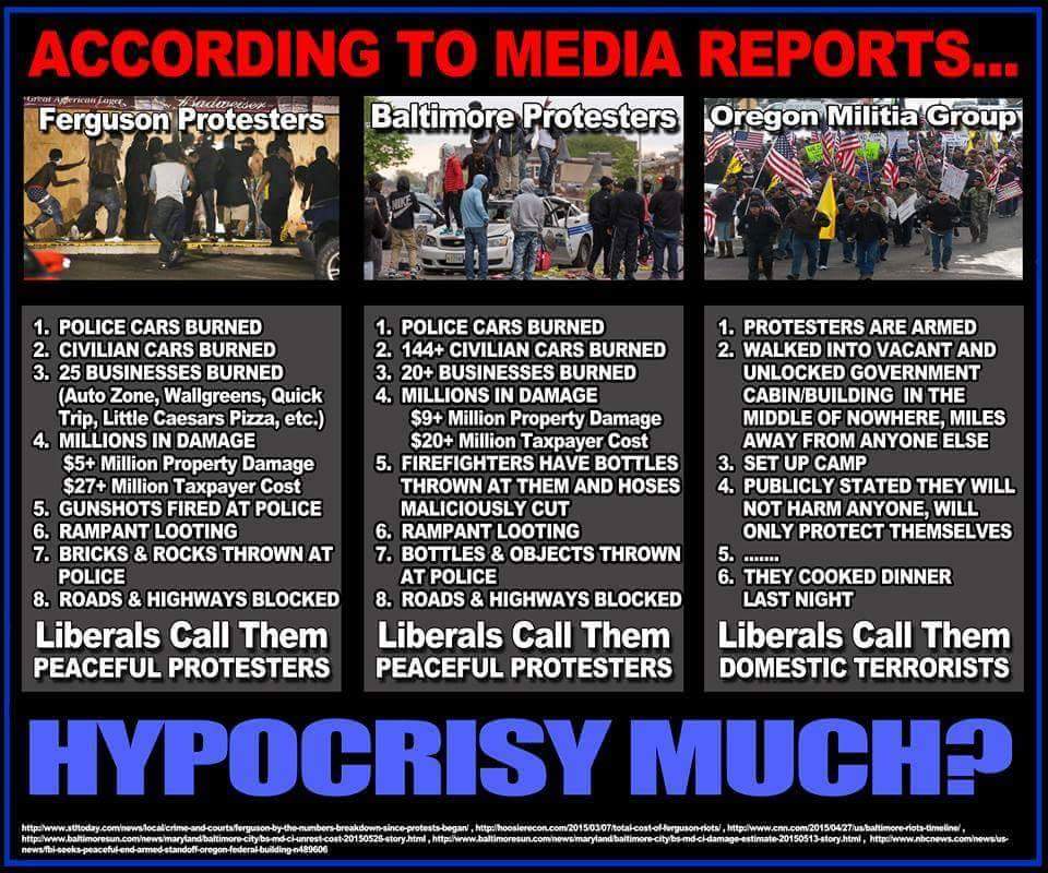 "its Not the Bundys or BLM job to speak for me Demand change with the barrel of a gun or a flaming bottle of gas while hiding behind the Constitution to justify their action . use the ballot box"