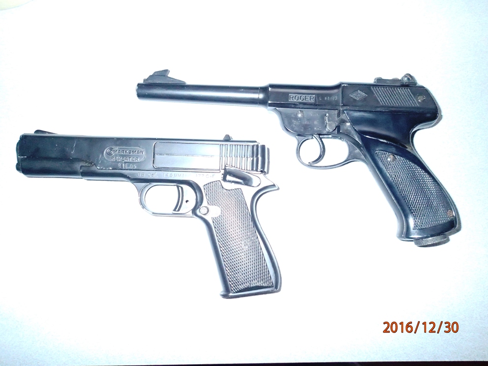 I'm not a gun guy, can anyone help me with the value, trying to help the girlfriend unload a couple reminders of her X. I think the Roger is probably more valuable, seems that I find a few going online for $25-$35, but I'm clueless. Markings on Roger made in Italy CAT1947, L60163 and the other is a Marksman Repeater BB 4.5 MM/.177 cal.