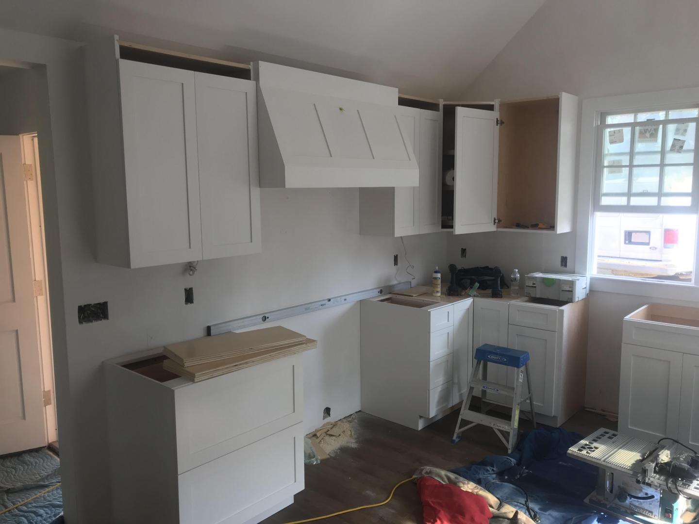 more in-progress pics....third pic is house next door with white cabinets and gray island cabinets.... manufacturer is Fabuwood