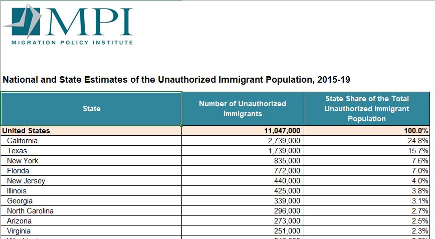 From the MPI; these are the top 10 states with 'unauthorized immigrants by share.