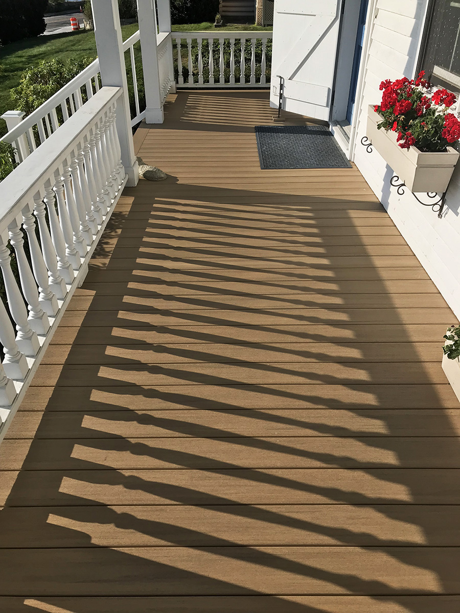 Projects 4 of 5 complete. Two sets of stairs totally rebuilt and proper rails added, grade level deck and wrap around porch resurfaced using existing substructure which just needed reinforcement for the picture frame and details and minimal sistering. All PT decking (about 1000 sq/ft) is now gone and I'm very pleased with the results. Last project is the lattice under the porch which I hope to have done next week.