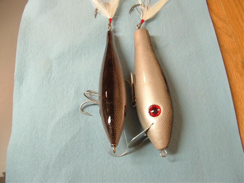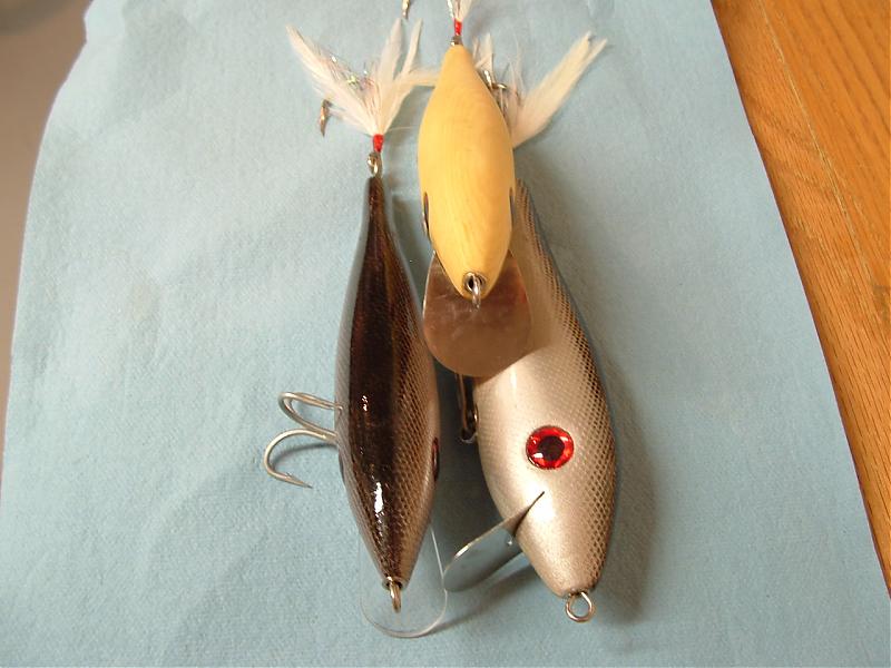You came to sites on top of the heap George ,, fantastic work ,, 20+ yrs. building shines...I just did a 10 swap over there.. just turning bodys (predators)... I'm changing sealer,, experimenting,,, I'm getting set up with new stuff,, couple of things $$$$.. I have 8 handcarves knockoffs..Big O ,,bomber,,cordell,,Gary2,,top gun,plastic type stuff.. I gotta get to work on needles soon for the bag .. want to fish knockoff Pichney pocket rockets next year . Had darter revelation to stop splitting want to work on that.. Lots to do so little time .. I wish winter was longer ,.  .. You taught me handcarve last year George .. thanks for that... is 4 hrs a long time to make a body ?.. Crash .. Blue/whites look mint .. can you slow sink them ,, vary depth slightly adjusting speed of retrieve ? even bring them on top at slow retrieve ..