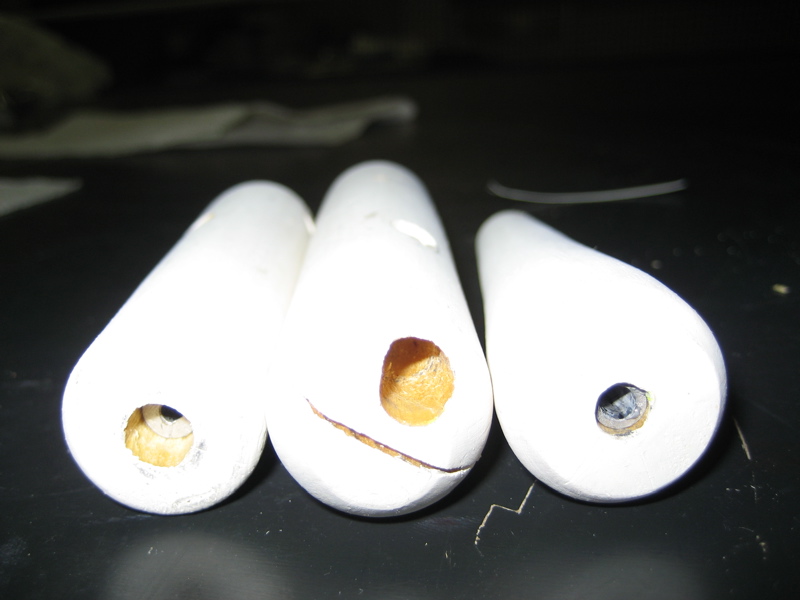 To weight the plug, I use three through wire weights. In the front of the tail section there is a 1" x 7/32" weight (cc tackle) that I've drilled out a bit to accomodate the doubled wire loop (it weighs 4.2 grams).