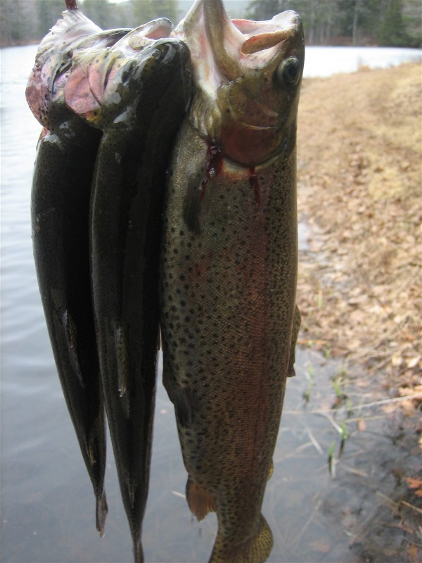I am at work and my wife just called to tell me a Large Black Bear just circled around the house and walked off down the driveway. The cat not the dog actually alerted her by growling out the front window. I wonder if it smelled the trout I filleted today. I will have to check the garden in the morning to see if it got the heads. I am trying to get her to go out and take pics of the tracks in the snow but understandably she is a little shook up.