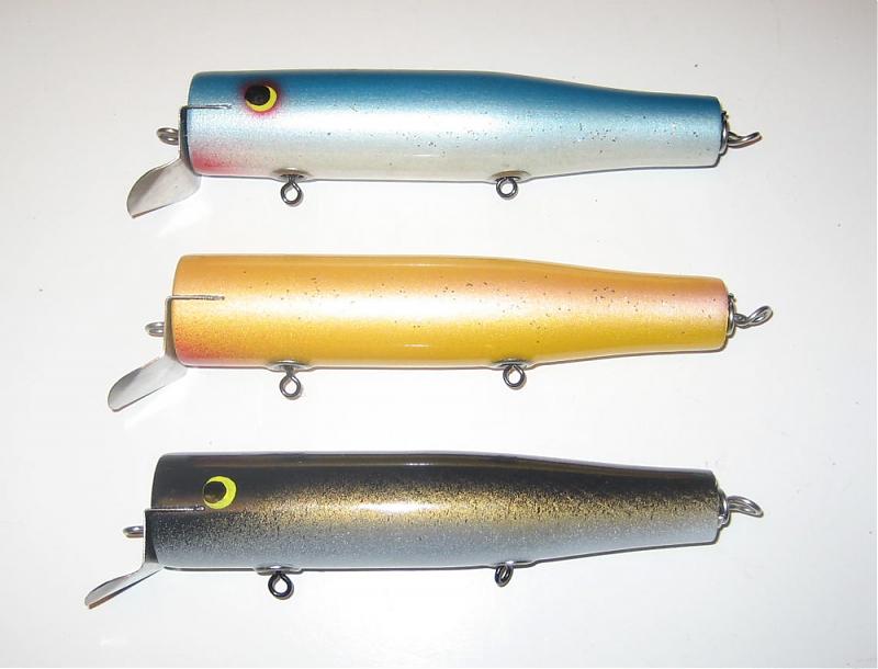 Yup....Jr's. Hey, Eddy, your white one got a bigger chin hook? Interesting. Somebody who knew plugs owned that one (check out the eye). Is it weighted or not? (For Christ's sake don't cut it if you can't tell).