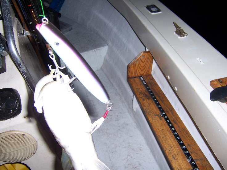 The thing about darters is that the emulate so many bait fish well,From snapper blues,herring,spike weaks to squid.If you have small bait present there's a good chance your gonna have some squid with em.A darter with it's sweeping side to side action is basically the only plug made that does not track straight in.IMO it is best at emulating the darty stop and start swimming actions of squid.Something to remember next time your just reeling one in.