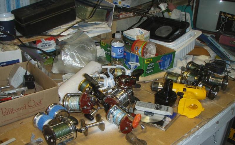 I cleaned for Ed. It was national invite a Brockton person over day. Plenty of mess there look at the bench tops, clutter city. Reels still needing cleaning. Pictures only make me feel like I have a hard time finishing anything. I am a true Yankee Fan, not the ball team  , pack rat. The pleasure was all mine Ed, anytime.