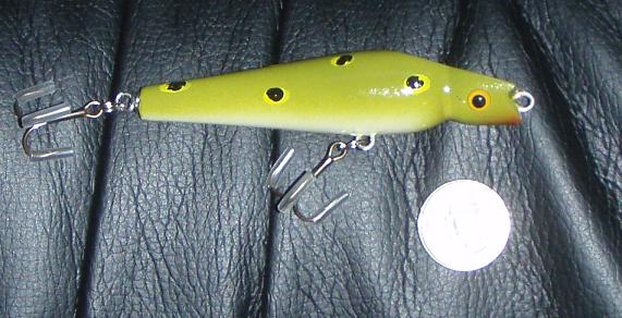 Here she is Outnumbered! Just wired her up! 6 3/8" in length and weighs 2 1/4 oz. Complete with 3/0 VMC's and a new BigFish feature.....gill plates! Hope you like it!