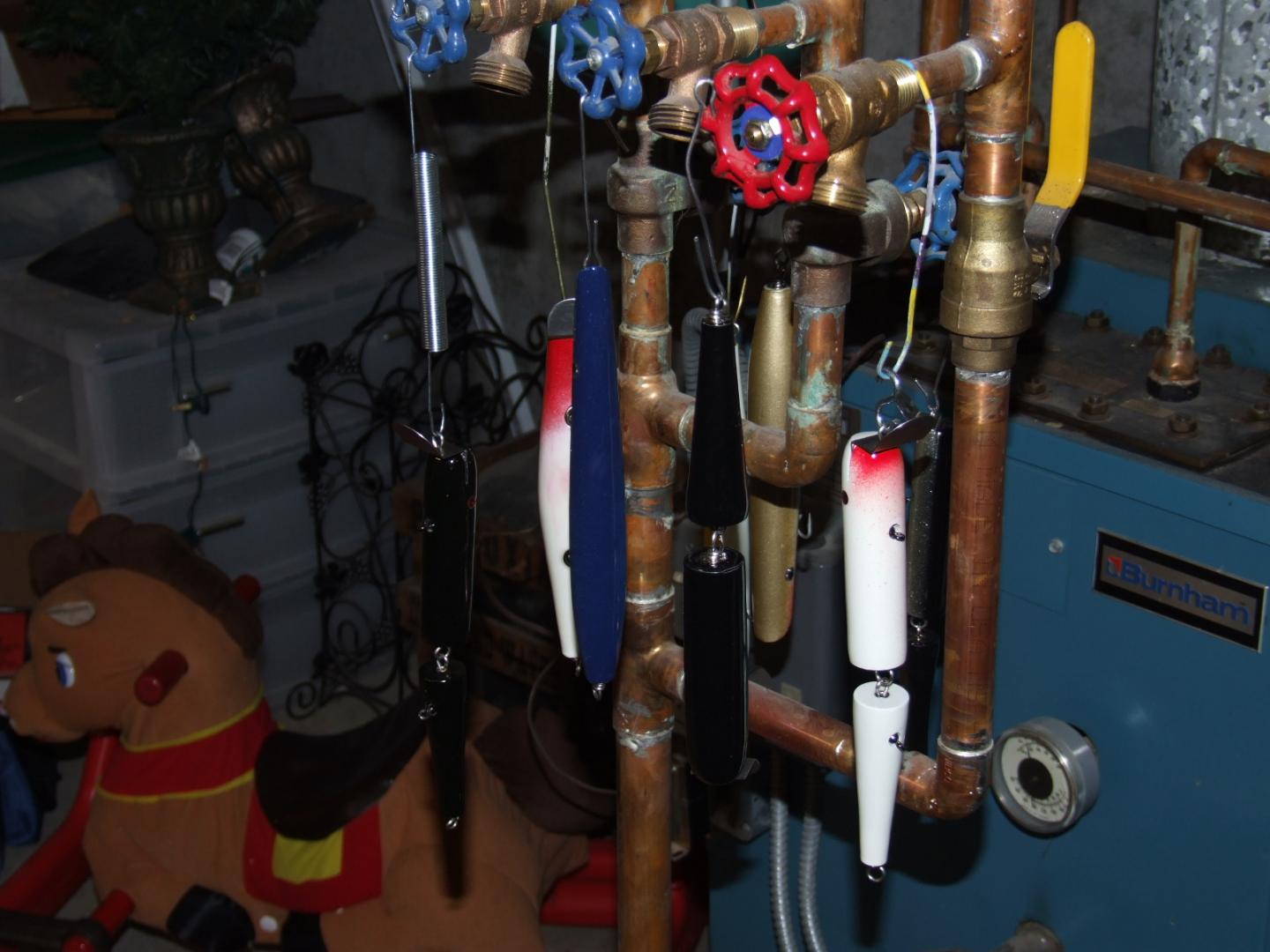 Here's the completed lineup, a nice pichney troller sr, and a good example of what happens when you get up at 4 am to do tail wraps and your pliers slip...no stitches as I didn't feel like driving 30 minutes....just splattered a little system 3 on the gash and it healed right over...