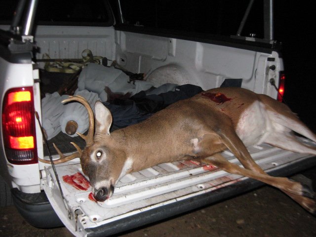 Ok who got out today and what did you see or get? I could not get out this morning but did get in the woods tonight and at 6:00 on the dot a nice 7 point came by broadside at 30 yards. The arrow flew true and 200+ pounds live weight into the back of the pickup. I know pictures to follow later. Good luck all.