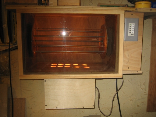 Mine is constructed out of plywood scraps and stuff I had laying around. Uses a microwave carousel motor which I found on the side of the road  . The whole project didn't cost me a dime, however I just picked up a lamp holder I have yet to wire up to a dimmer so I can control the temp alot easier. A plexiglas window on the front might come in handy as well.