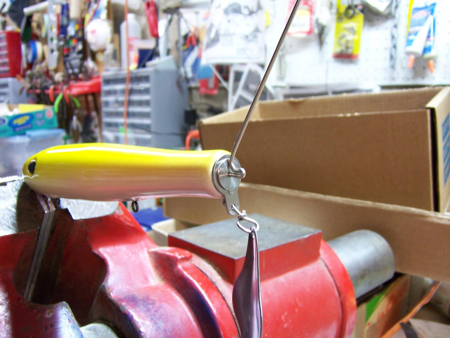 Here is how I do the tail wrap as I have kind of given up on the threaded wire thing as it takes way too much time to thread and I think it may be compromised by a big fish as it is such a small thread. I feel the wrapping of the wire is much stronger. Takes some practice for sure but works great, after a while. I also am now anchoring the hanger into the body of the plug so it can't move around which can be aggravating. I pin it into the body now and glue it.