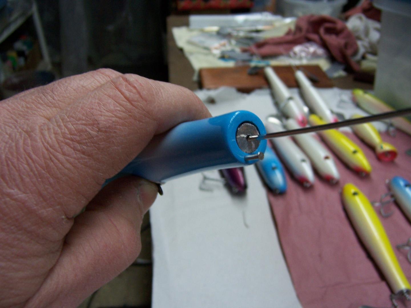 Here is how I do the tail wrap as I have kind of given up on the threaded wire thing as it takes way too much time to thread and I think it may be compromised by a big fish as it is such a small thread. I feel the wrapping of the wire is much stronger. Takes some practice for sure but works great, after a while. I also am now anchoring the hanger into the body of the plug so it can't move around which can be aggravating. I pin it into the body now and glue it.