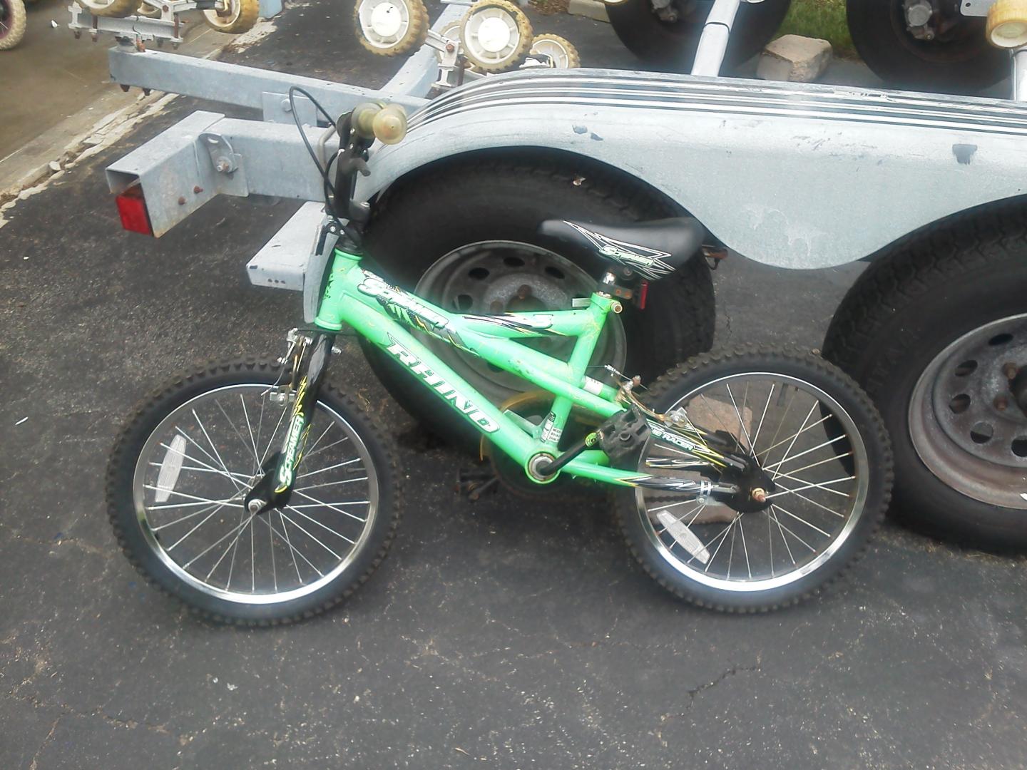 the green one is 18" this one was picked from the dump a few yrs back and my son got a few good years out of it. The hand brakes do not work but the pedal brakes do.