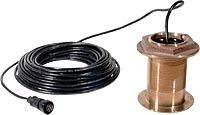 Bronze, thru-hull mount transducer with depth & temperature. Operating frequency of 200 and 50 kHz. Beamwidth of 12 degrees at 200 kHz, 45 degrees at 50 kHz. Transducer kit comes with installation instructions.