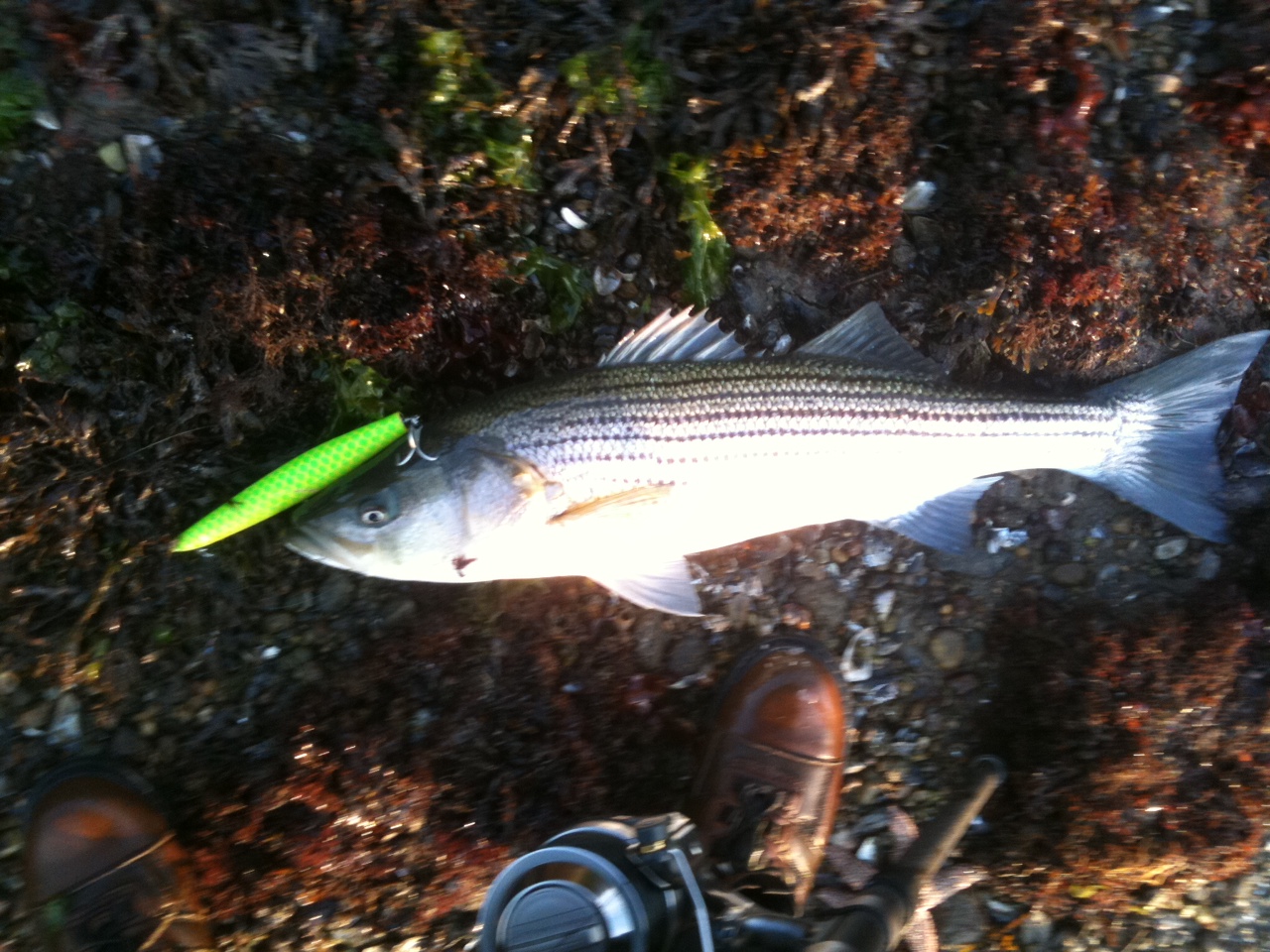 It's been slow and I haven't been out much, but here is a 30" Bluefish from the NH rocks on a surf howdy by Lower. (best fight of the year)