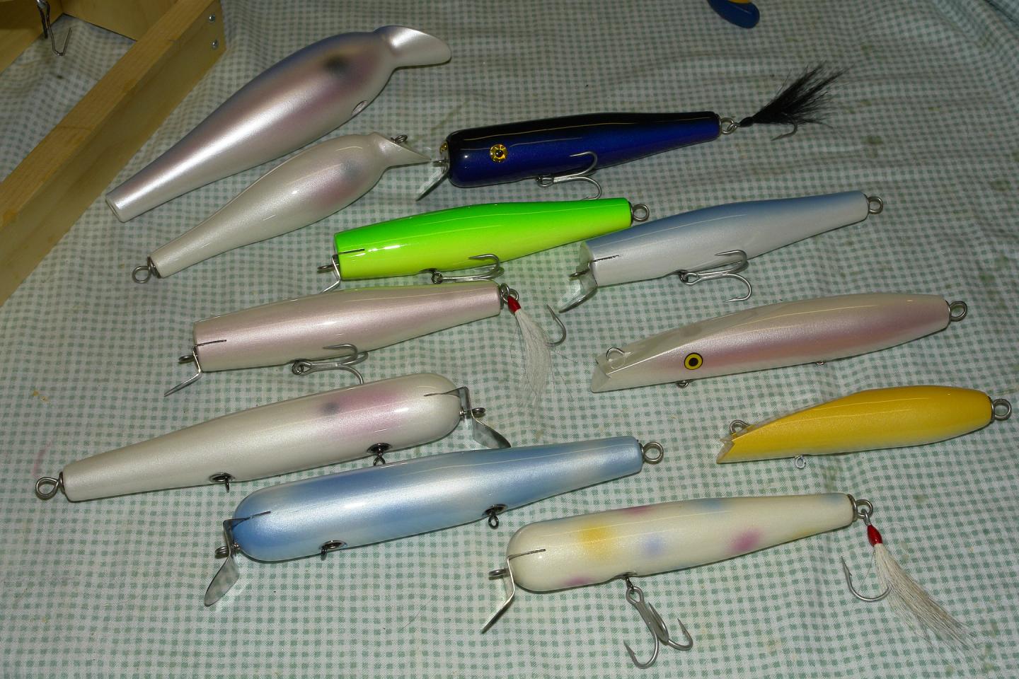 Have alot of unfinished plugs I have to finish.......CCBC Surfster copy, some MasterLure and Snook Bait Co. copies, a few custom "Flaptail" plugs for me! Gonna be a busy next few weeks!