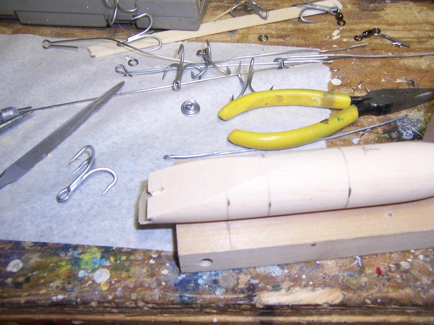 How do you do it? I saw Rockfish's jig at Plugfest, and I still didn't "get it".... I have a couple bodies turned with square ends still on. Need a visual of your jigs or process. I have a few good darters I am using as templates, but am stuck at this particular stage and want to keep my fingers away from the bandsaw blade. Thanks for your input and pics.