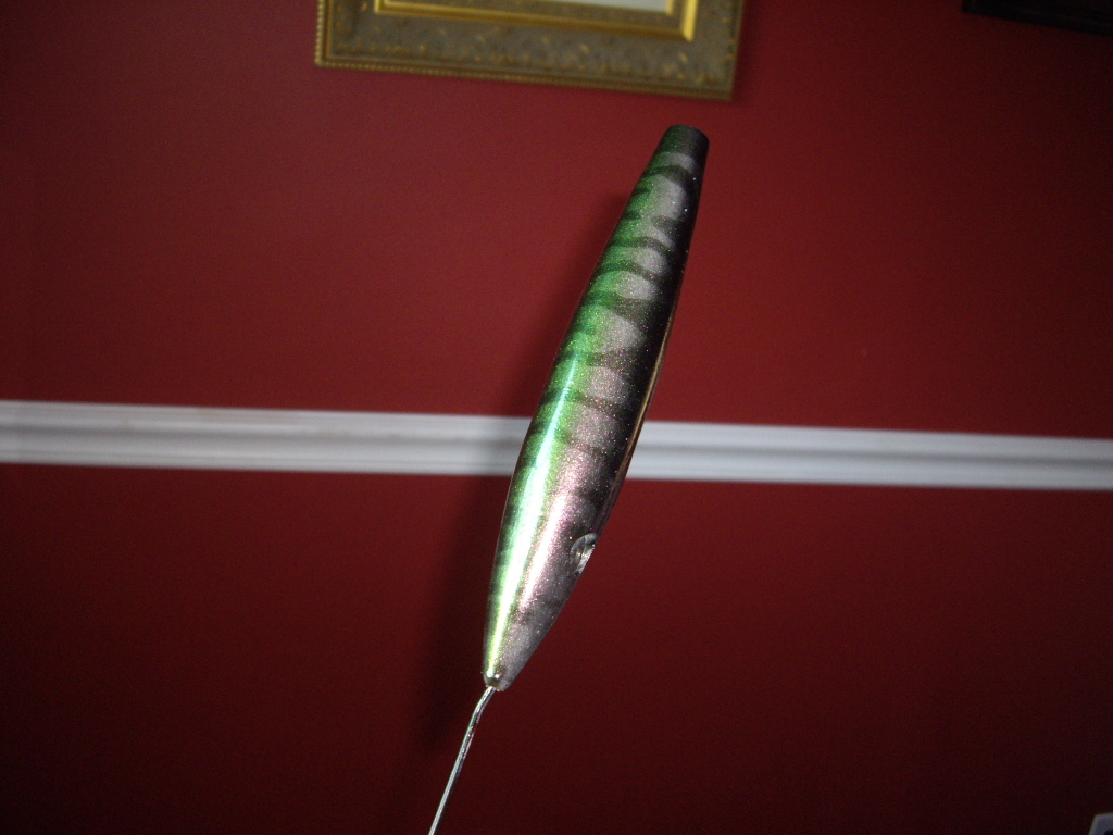 Well, spent some time painting and sealing this weekend while not working on the bathroom. Here are some pics of the Eddie needles, 7" Danny, Small 4 3/4" swimmers, and Small Musso swimmers. I have another 5 with paint drying